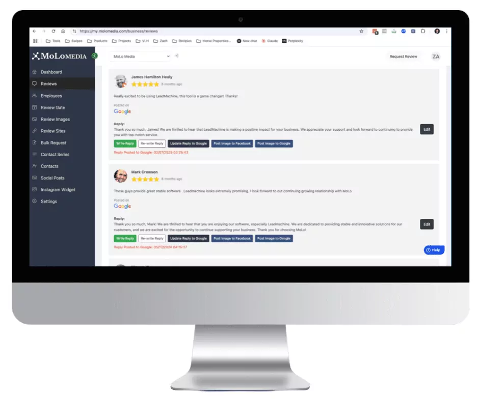 Use the power of AI to instantly write Google review responses to all reviews. You are immediately notified of new reviews and sent the AI generated response in real time, so that you can easily approve, edit, or deny. Once approved, it is automatically posted to Google in seconds.