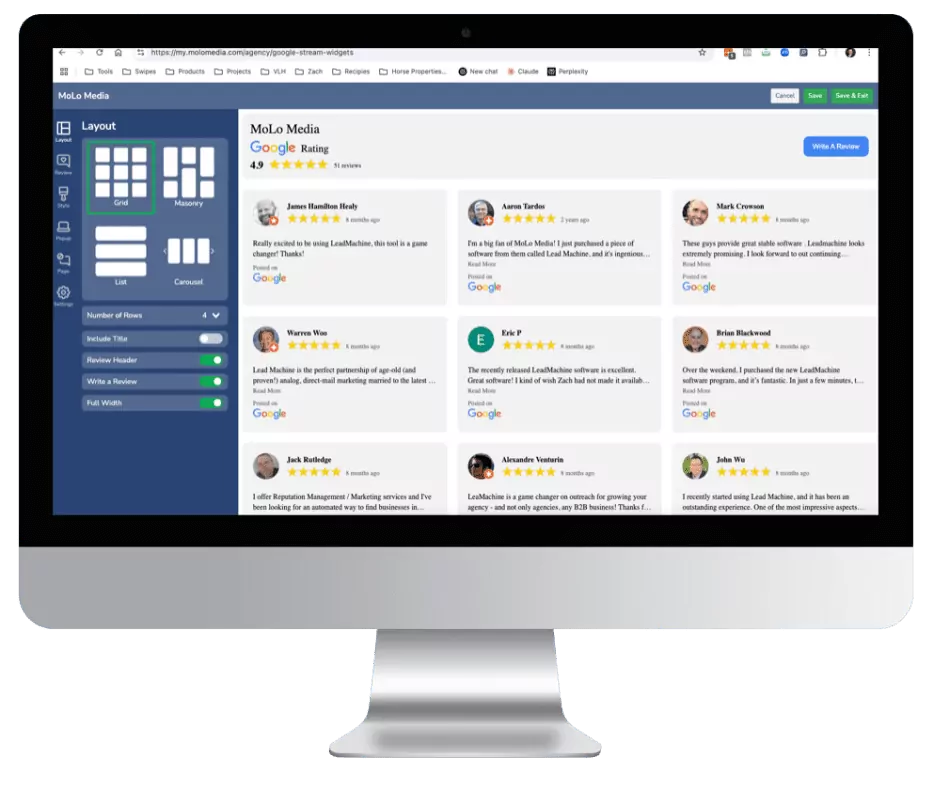Stream Your Customers Positive Google Reviews Directly On Your Website