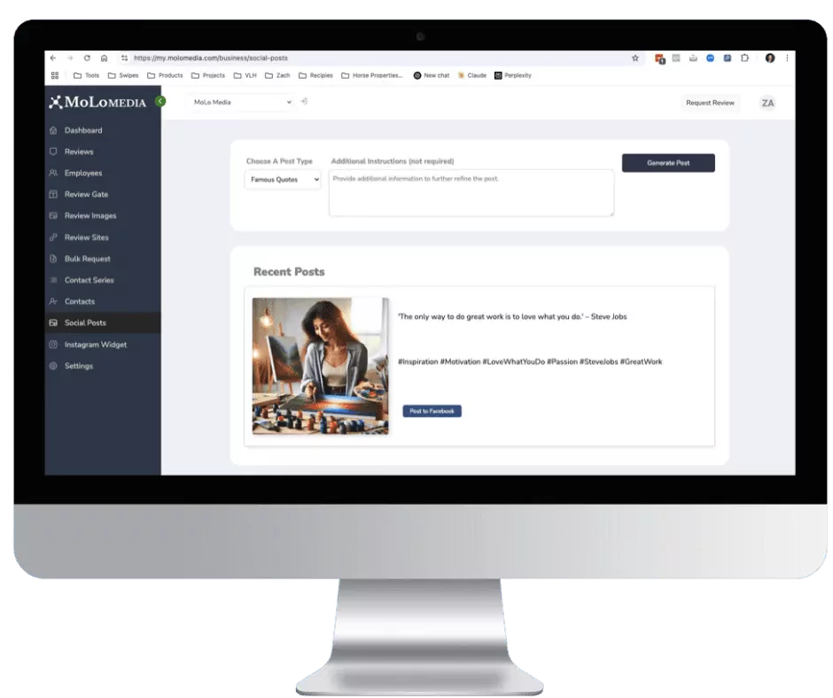 Automatically use AI to create social media posts. The system can post automatically or send out emails to you to edit or approve and automatically post to your social media.